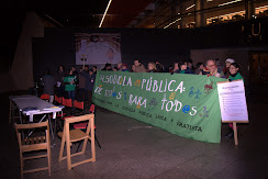 Tras la representación, se celebró una asamblea en la que participaron las personas presentes, miembros de toda la comunidad educativa: familias, profesorado y alumnado. Como se puso de manifiesto en la asamblea, uno de los aspectos que más está preocupando es el problema de la sustitución del profesorado que está de baja. Se habló de algún centro de la provincia de Burgos que ha estado un mes sin profesor y de que en España hay diariamente 50000 alumnos sin profesora debido a la no obligación de cubrir una baja médica hasta que hayan transcurrido dos semanas. E n este sentido, se llamó a la no colaboración en el deterioro de la educación pública al profesorado, a las AMPAS y al propio alumnado. Otro problema que se comentó es la penuria económica de Centros de Ciclos Formativos en los que carecen de medios para desarrolla la actividad educativa y las prácticas imprescindibles en este tipo de enseñanzas.